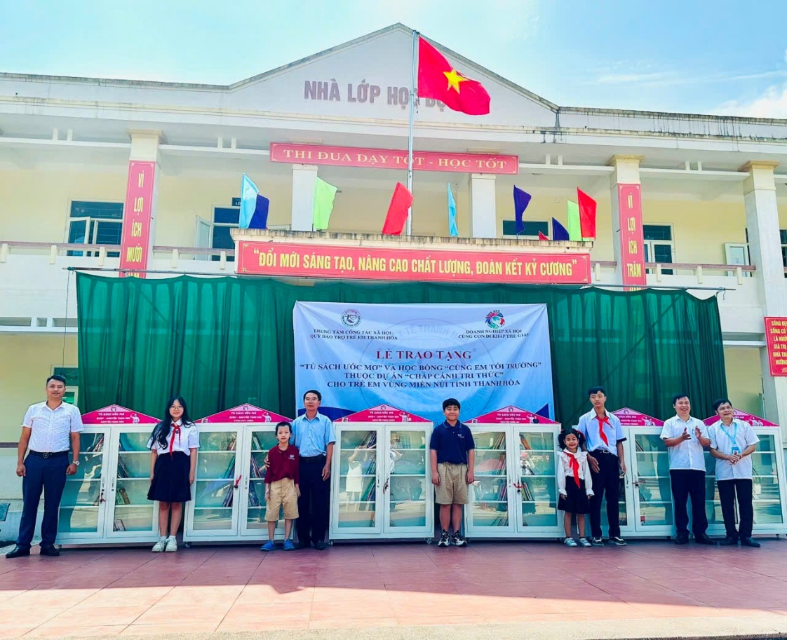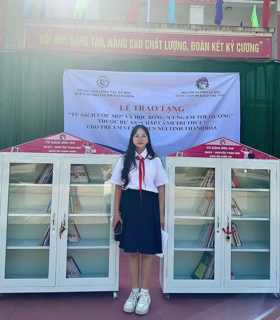 Cuối tuần qua, trong khi những bạn bè đồng trang lứa còn đang trong thời gian sắp xếp việc học hành sau ba tháng nghỉ hè thì Nguyễn Thảo Nhi – Trưởng nhóm Đại sứ Miền Bắc của Cùng Con Đi Khắp Thế Gian cùng những người bạn đồng hành đã có mặt tại Trường Tiểu học & Trung học cơ sở Chí Linh, xã Linh Sơn, tỉnh Thanh Hóa để trao 6 “Tủ sách ước mơ” và 16 suất học bổng “Cùng em đến trường”. Đây là hoạt động xã hội đầu tiên nằm trong dự án giáo dục phi lợi nhuận “Chắp cánh tri thức” do chính Thảo Nhi sáng lập và vận hành dưới sự cố vấn và quản lý của DNXH Cùng con đi khắp thế gian.