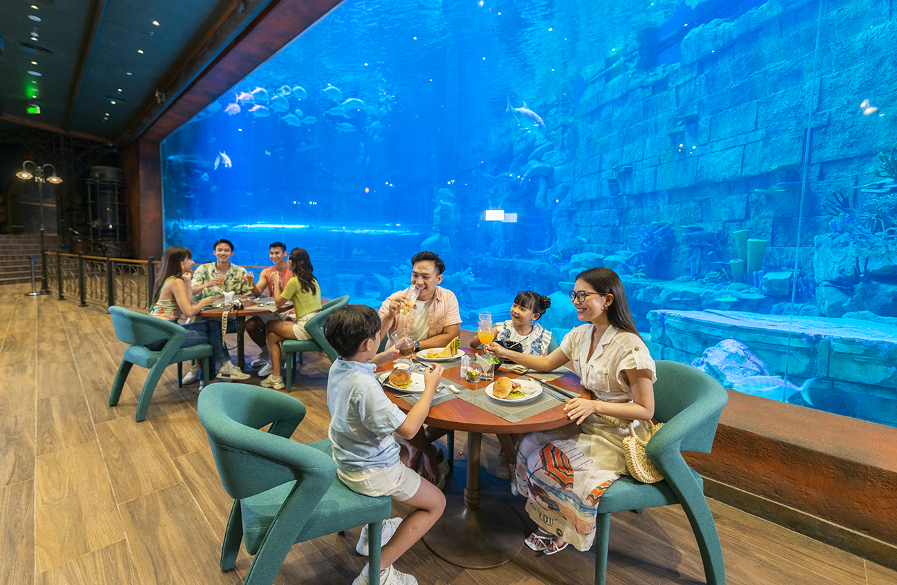 Sau buổi sáng ngập tràn năng lượng, Bắc đảo mời gọi du khách bước vào thế giới của những hương vị tinh tế. Trong nhà hàng Deep Sea, thực khách có thể vừa thưởng thức tinh hoa mỹ vị, vừa ngắm nhìn cả thế giới dưới nước chuyển động ngay bên cạnh, mang đến một trải nghiệm độc đáo và lý thú.