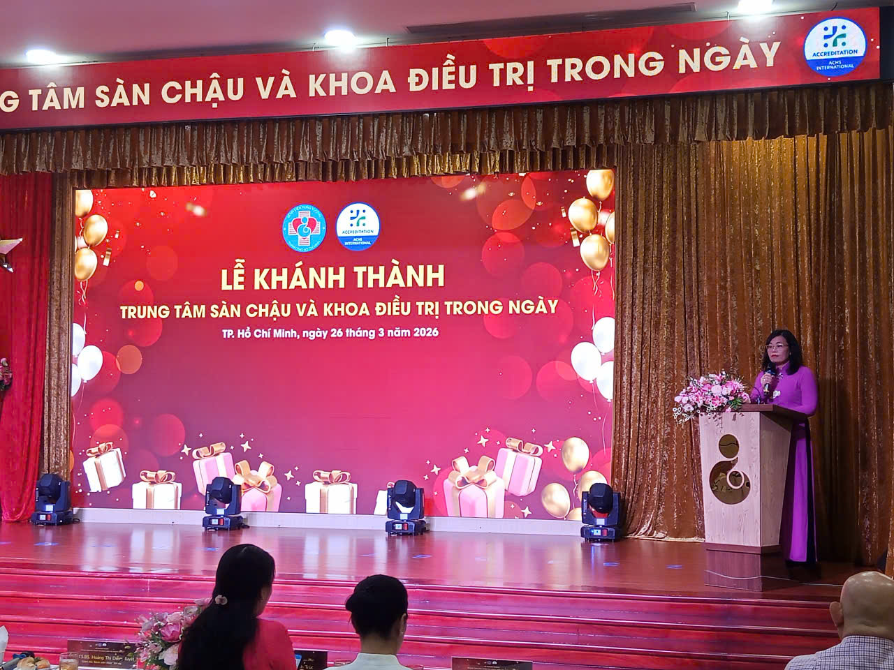PGS-TS-BS Hoàng Thị Diễm Tuyết, Giám đốc Bệnh viện Hùng Vương, phát biểu tại buổi lễ