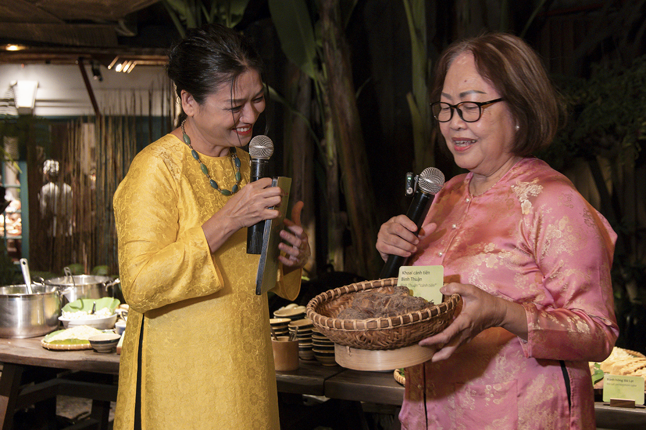 Bữa tiệc mỹ vị thực vật thanh lành khép lại với những món tráng miệng cũng rất cuốn vị giác bởi vị ngọt nhẹ và thanh mát của Chè long nhãn Hưng Yên hạt sen Huế, Chè khoai cánh tiên Phan Thiết, bánh hồng Đà Lạt hay bánh cốm Hà Nội. Trong đó, Chè long nhãn Hưng Yên hạt sen Huế để lại một dư vị khó quên khi được chế biến đặc biệt với nước cất từ sen trắng cổ Bạch Liên Huế giúp bổ khí huyến, an thần và dưỡng tâm. Tất cả hòa quyện không chỉ giữ sự thanh tao của hương vị mà còn nhắc nhớ sự tinh tế của ẩm thực truyền thống xứ Huế kinh kỳ xưa.