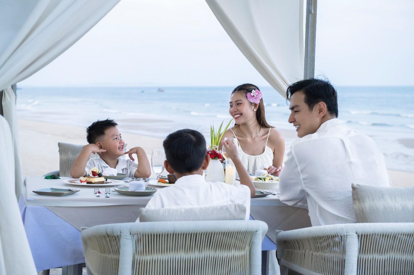 Ở đây, gia đình Huyền Thanh tìm thấy sự cân bằng hoàn hảo: người lớn tận hưởng spa, yoga trên bãi biển, còn trẻ nhỏ thì vui chơi tại khu giải trí riêng. Những trải nghiệm hải sản địa phương, chèo kayak và tham gia lớp học nấu ăn cùng bếp trưởng khiến chuyến đi thêm phần thú vị.
