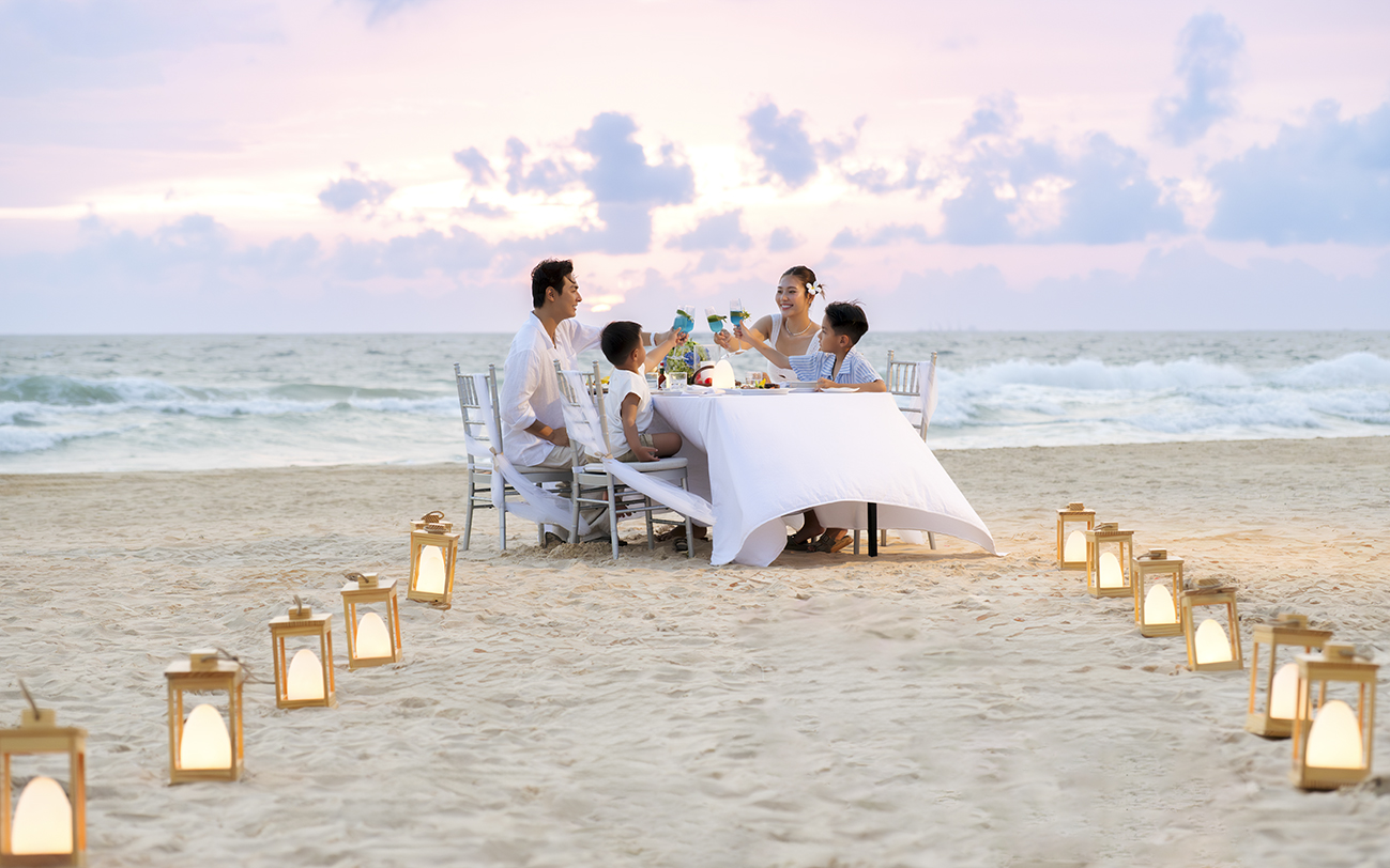 Ở đây, gia đình Huyền Thanh tìm thấy sự cân bằng hoàn hảo: người lớn tận hưởng spa, yoga trên bãi biển, còn trẻ nhỏ thì vui chơi tại khu giải trí riêng. Những trải nghiệm hải sản địa phương, chèo kayak và tham gia lớp học nấu ăn cùng bếp trưởng khiến chuyến đi thêm phần thú vị.