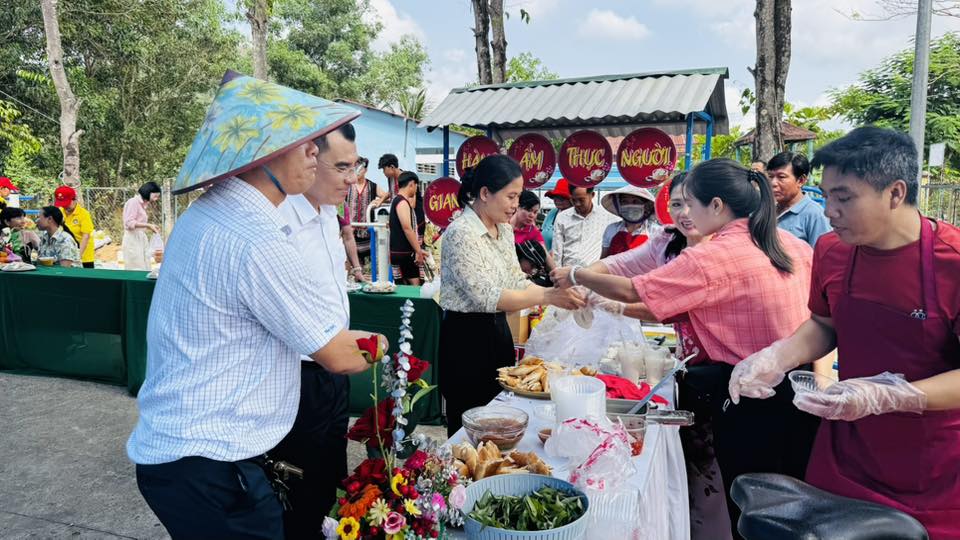 Các đại biểu và nhân dân trải nghiệm ẩm thực truyền thống.