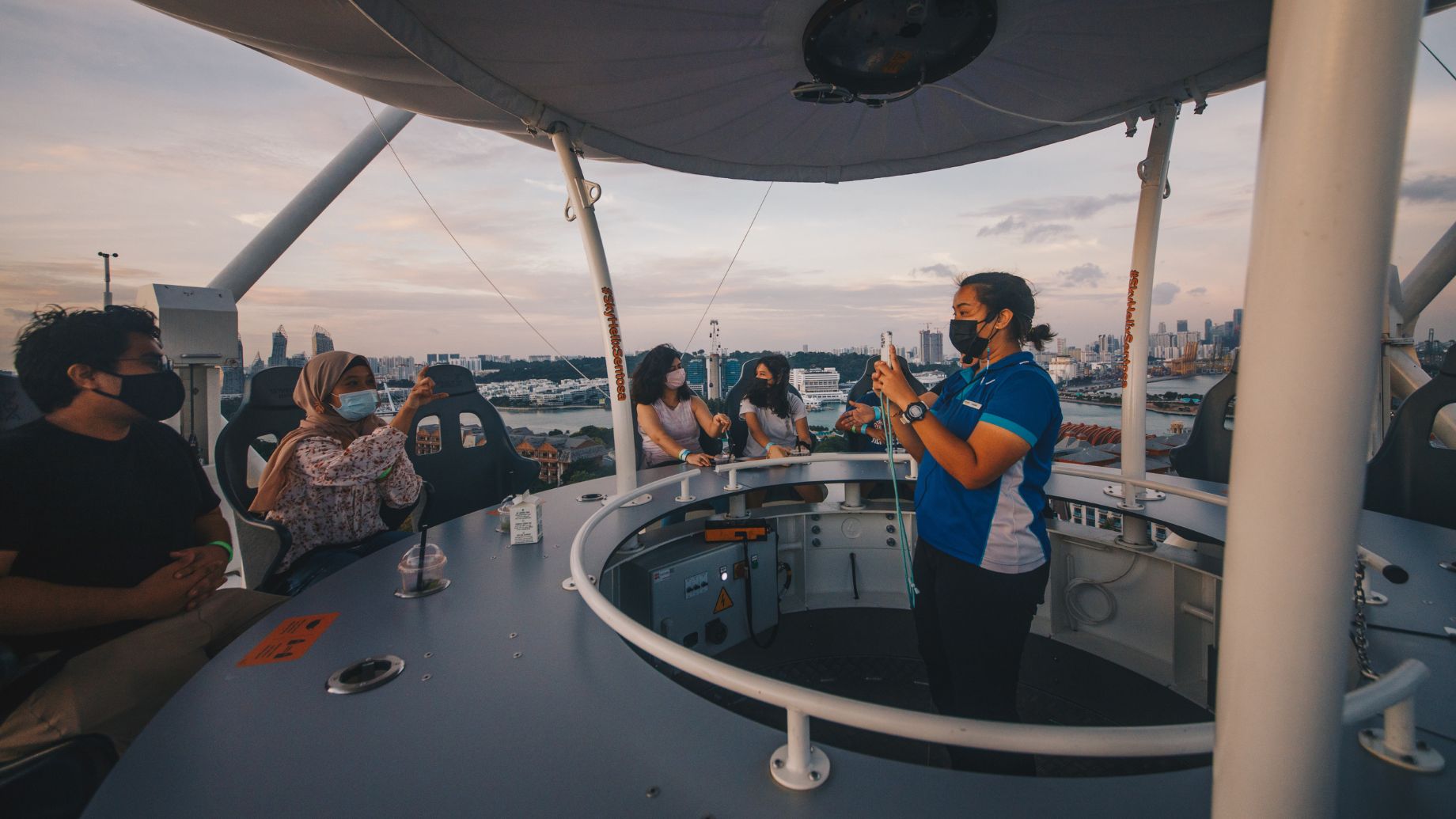 Du khách tận hưởng toàn cảnh hòn đảo Sentosa gói trọn trong tầm mắt mình từ đài quan sát SkyHelix (Nguồn: Sentosa)