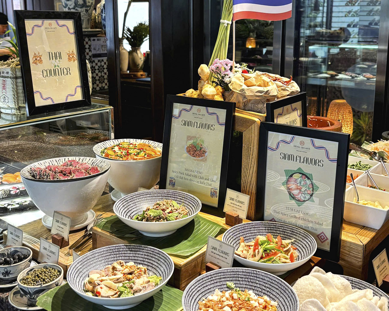 Trong sự kiện ẩm thực “Siam Flavors”, bếp trưởng Chamnarn sẽ chiêu đãi thực khách loạt món ăn tiêu biểu và đặc sắc của Thái Lan như Pad Thái, súp Tom Yum, các loại gỏi đu đủ, gỏi gà nướng, gỏi thịt heo chua cay được chế biến cùng nước xốt Thái độc quyền, không thể thiếu các lựa chọn tráng miệng kinh điển như xôi xoài cùng trà sữa Thái thơm béo. Tất cả sẽ được phục vụ song hành cùng thực đơn đa dạng các món Á, Âu đặc trưng tại nhà hàng Saigon Kitchen.