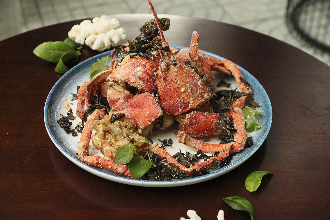 Bữa tiệc mỹ vị biển khơi trở nên hấp dẫn hơn với tôm hùm Mỹ thượng hạng được chế biến thành 2 món tuyệt hảo. Món Tôm hùm rang muối lá trà là một sáng tạo rất riêng của Madame Lam, với Tôm hùm được kết hợp tinh tế cùng loại muối đặc chế từ đậu xanh, gạo nếp rang và lá trà Thái Nguyên, mang đến hương vị hài hòa, hội tụ sự tinh túy của núi rừng và biển cả, gợi nhắc nét ẩm thực truyền thống và hiện đại đang xen.