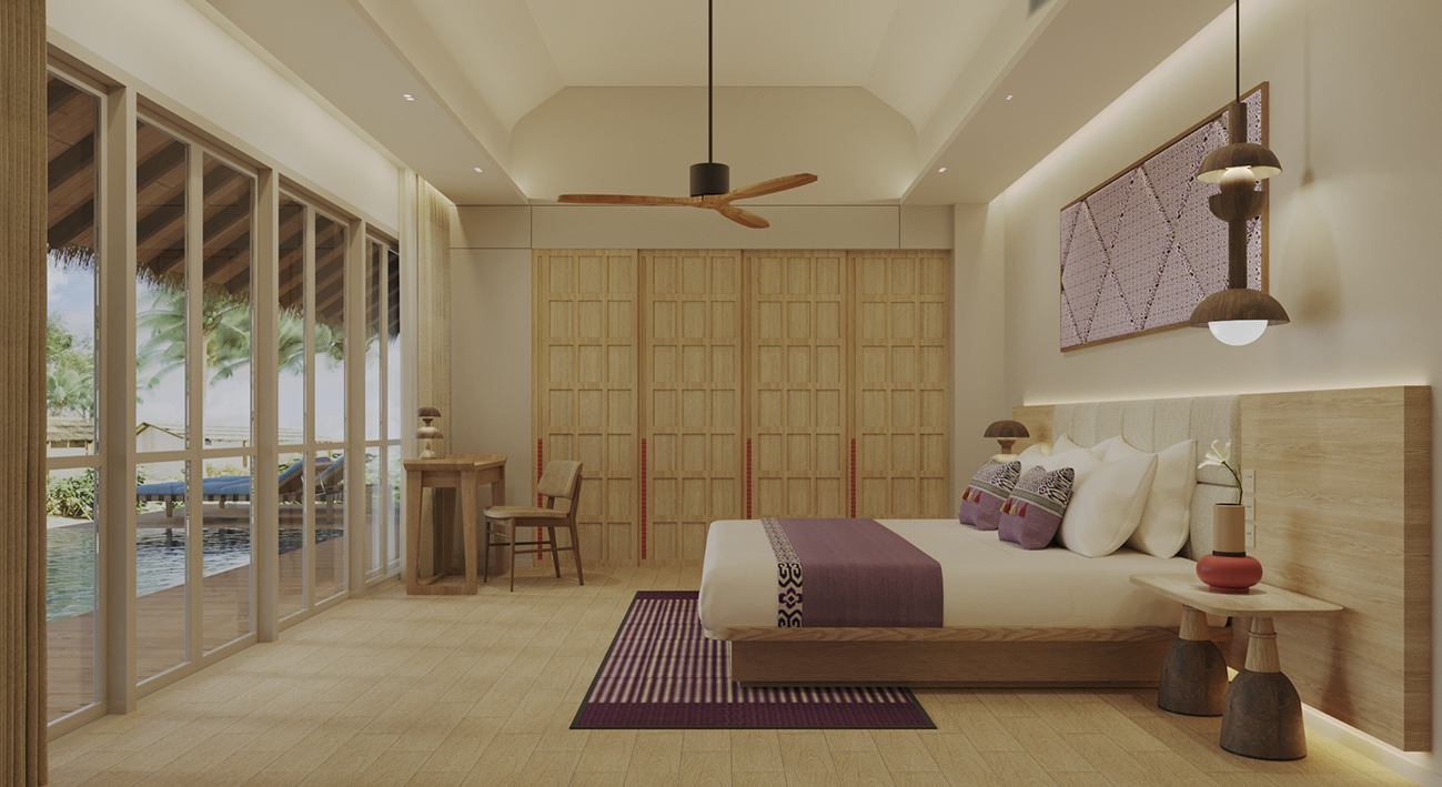 Khu nghỉ dưỡng gồm 63 suite và villa, mang tinh thần thanh nhã và tối giản: những không gian ngập tràn ánh sáng và nhịp thở của đại dương. Thiết kế lấy cảm hứng từ khái niệm “Nit Thra” (linh hồn của sự nghỉ dưỡng) của Thái Lan, tôn vinh sự cân bằng, an yên và hồi phục. Nội thất được chế tác thủ công từ vật liệu tự nhiên, kết hợp hoa văn đan lát truyền thống của cộng đồng ngư dân Urak Lawoi, tạo nên không gian vừa mộc mạc vừa tinh tế. Từ Beachfront Pool Suite, du khách có thể bước thẳng xuống bãi cát mịn màng của Laem Tong Beach; tận hưởng khung cảnh bao quát từ Hilltop Pool Villa với hồ bơi vô cực riêng; hoặc thư giãn trong Family Garden Suite giữa khu vườn nhiệt đới xanh mát.
