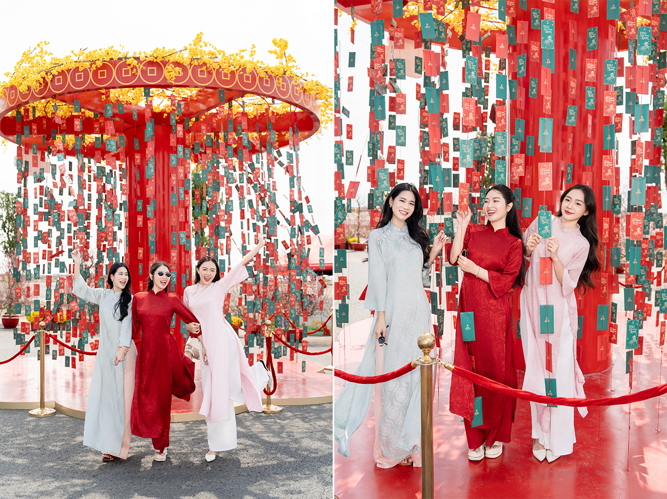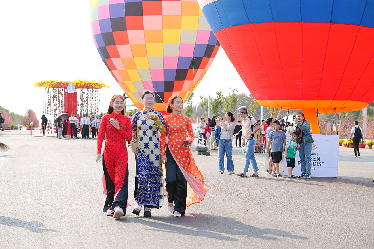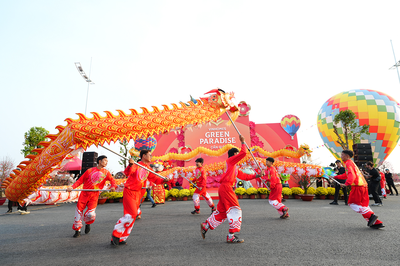 Xuyên suốt 3 tuần diễn ra lễ hội, Vinhomes Green Paradise Cần Giờ được bao phủ trong sắc màu rực rỡ đặc trưng dịp Tết cổ truyền, với hệ thống cổng chào, đại cảnh và các tiểu cảnh nghệ thuật hình linh vật năm Bính Ngọ. Không chỉ đắm chìm trong không khí vui tươi, náo nhiệt dịp Tết đến Xuân về, du khách sẽ được trải nghiệm không gian “lễ hội trong lễ hội” chào xuân đầu tiên tại Việt Nam, gồm lễ hội hoa xuân, lễ hội khinh khí cầu, trình diễn dù lượn, lễ hội ẩm thực 3 miền…, check-in với các góc trang trí đậm chất nghệ thuật và là xu hướng năm 2026, đặc biệt là có cơ hội ngắm từ trên cao toàn bộ khung cảnh biển, rừng, sắc hoa tại “thiên đường xanh” Vinhomes Green Paradise Cần Giờ.