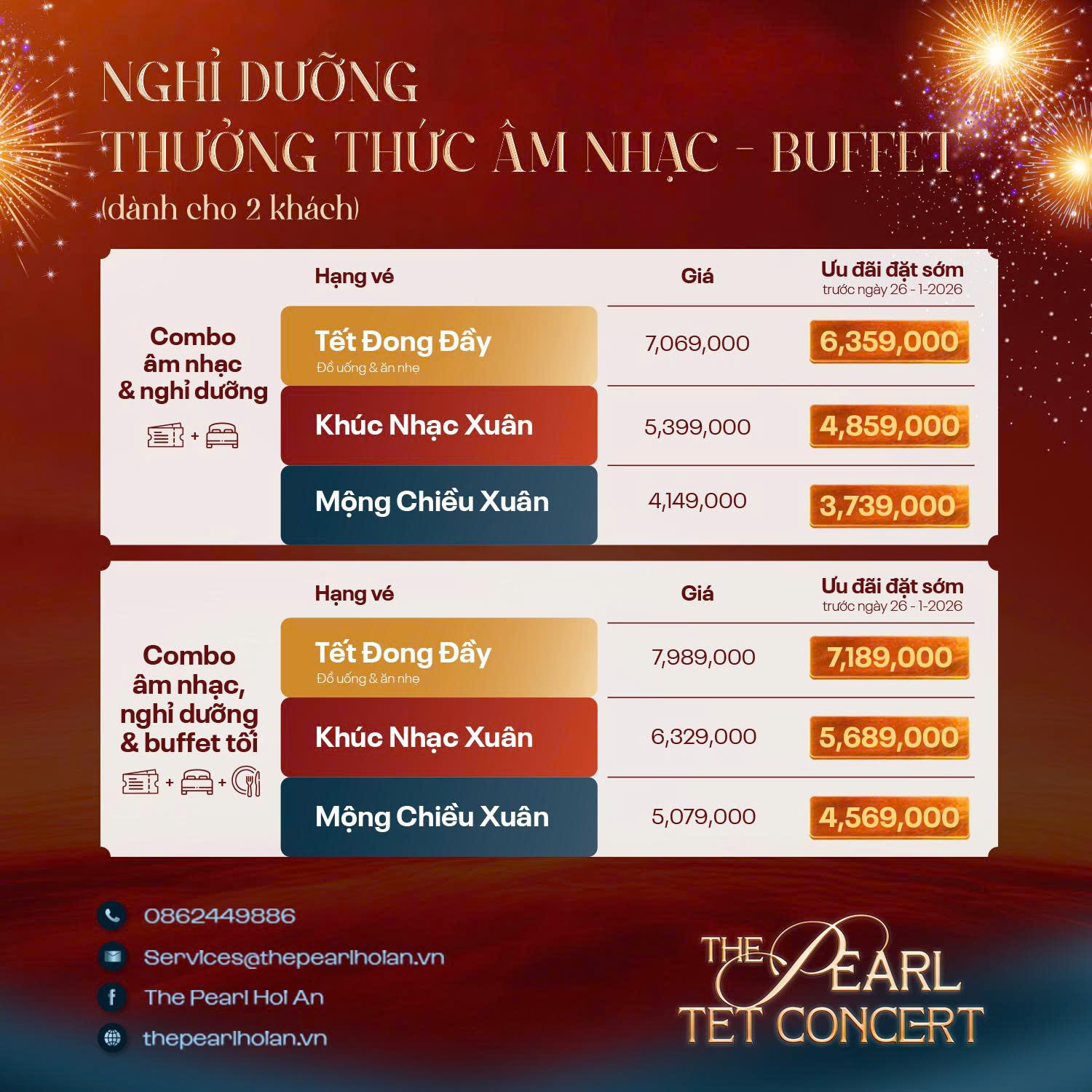 Trong không khí trong trẻo của những ngày đầu xuân mới, The Pearl Hoi An trân trọng giới thiệu đến công chúng The Pearl Tet Concert – Bản Giao Hưởng Mùa Xuân Bên Bờ Biển An Bàng, một đêm nhạc nghệ thuật đặc biệt diễn ra vào 19:30 ngày 21/02/2026 (Mùng 5 Tết Âm lịch).