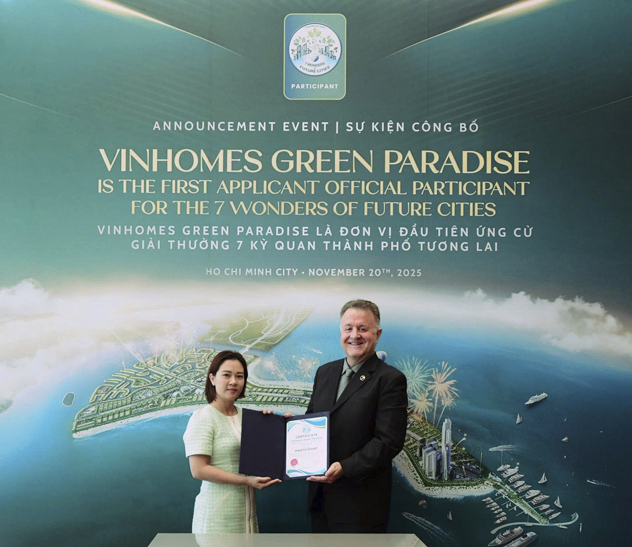 Phát biểu tại lễ trao chứng nhận, ông Jean-Paul de la Fuente, Giám đốc New7Wonders và Chủ tịch chiến dịch “7 Kỳ quan Đô thị Tương lai” cho biết: “New7Wonders rất vui mừng thông báo Vinhomes Green Paradise đã trở thành Ứng viên Chính thức đầu tiên của 7 Kỳ quan Đô thị Tương lai, chiến dịch toàn cầu nhằm tìm kiếm 7 thành phố và đại đô thị sẽ truyền cảm hứng cho tương lai nhân loại. Không chỉ đáp ứng đầy đủ các tiêu chí cốt lõi của chương trình, Vinhomes Green Paradise còn đại diện cho sứ mệnh cao cả của một tập đoàn hàng đầu châu Á và trên thế giới, đã và đang tích cực tham gia vào ứng dụng ESG++ trong nhiều hoạt động. Đó cũng là lý do chúng tôi trực tiếp đến Việt Nam để trân trọng trao chứng nhận Ứng viên Chính thức, đánh dấu một dấu mốc mang tính biểu tượng cho toàn bộ chiến dịch. Đây còn là dịp để chúng tôi trực tiếp đến thăm dự án và tận mắt chứng kiến quá trình hình thành một đại đô thị thực sự phi thường - nơi thiên nhiên, con người và công nghệ được hoà quyện và tôn vinh lẫn nhau. Đó là tinh thần mà mọi ứng viên của 7 Kỳ quan Đô thị Tương lai cần hướng tới”.